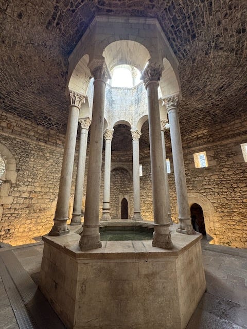 Our last stop in Girona was the Arab Baths, nestled at the foot of the Girona Cathedral. Built in the Romanesque style, the baths blend influences from Roman baths, Arab baths, and Jewish mikvahs. There were several rooms to view, each with a particular purpose for those participating in the baths. It turned out to be a much more sophisticated system than we expected and a surprisingly interesting stop on our Girona wander.